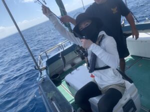 沖縄も11月に入り、だいぶ涼しくなってきましたね(^^)水温もだいぶ低くなってきましたがまだギリギリ泳げる水温かも?しれません(・∀・)♪先日はご新規様ご家族3人でご利用いただきました♪皆さん船釣り初体験という事で、メイ … 続きを読む ファミリー様と♪