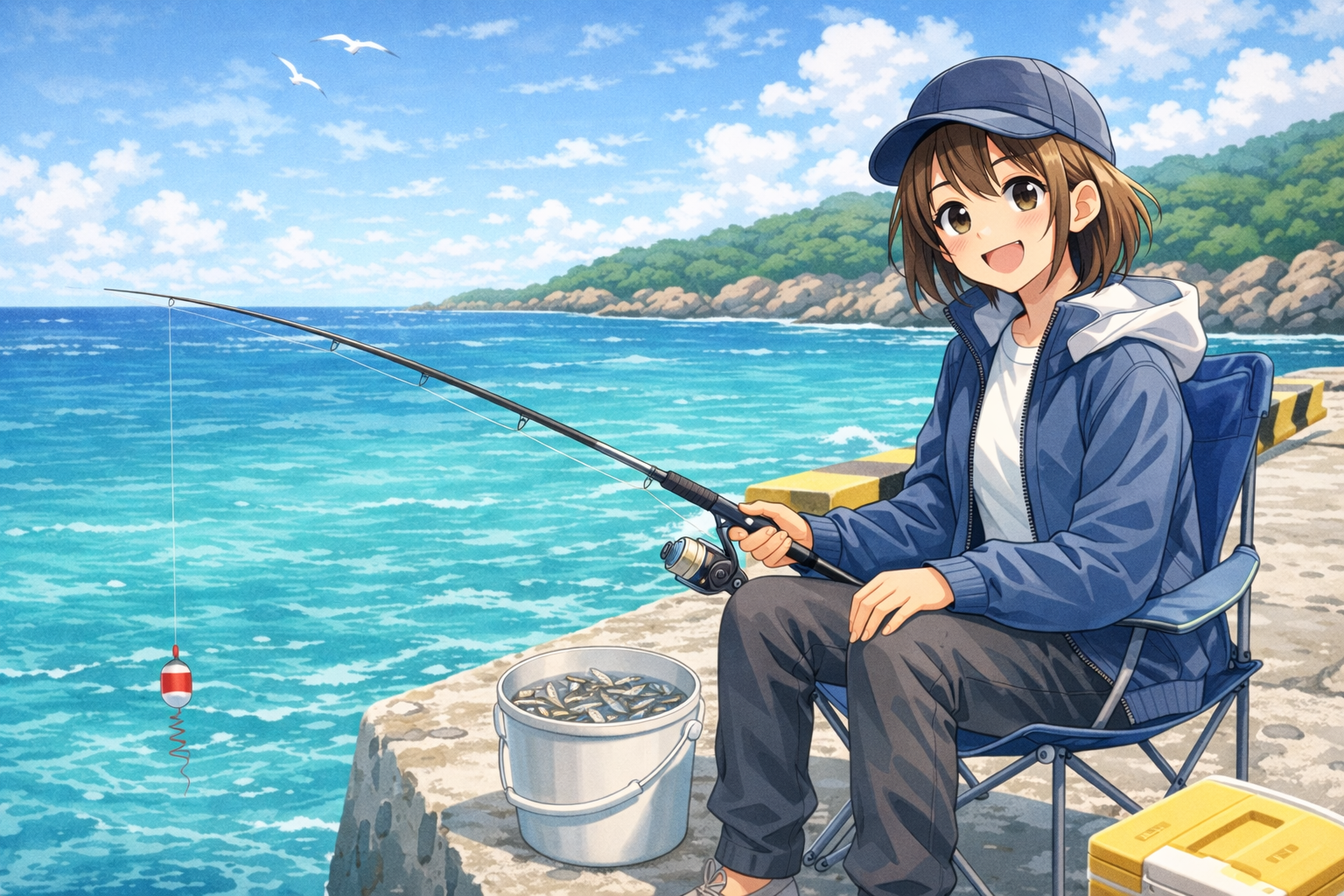 椅子に座って、海を眺めながら待つ時間も含めて、釣りそのものを楽しめます。