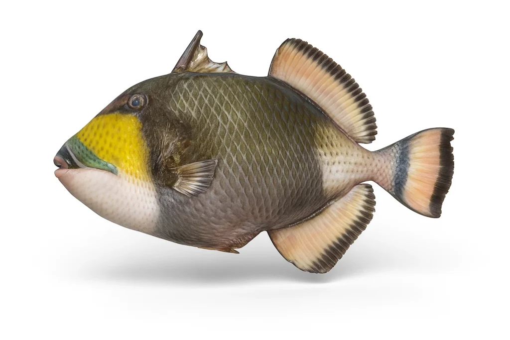 ゴマモンガラは、モンガラカワハギ科に属する大型のトリガーフィッシュ。